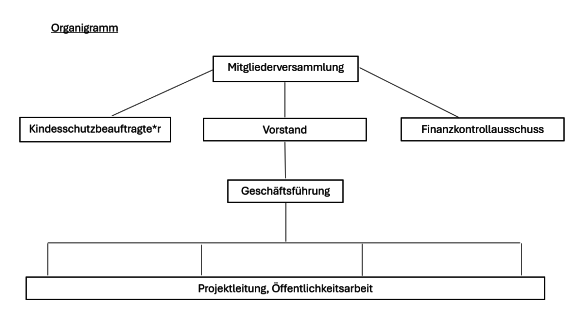 Die Mitgliederversammlung bestimmt die Richtlinien und Prioritäten des Vereins im Rahmen der Satzung und tagt mindestens einmal jährlich. Sie wählt die Mitglieder des Vorstands, des Finanzkontrollausschuss sowie den*die Kindesschutzbeauftragte*n. Sie bestätigt das Mandat des Geschäftsführers und bestimmt die externe Wirtschaftsprüfung Sie beschließt den Wirtschaftsplan und genehmigt den Jahresabschluss auf der Grundlage des Wirtschaftsprüfungsberichts. Außerdem definiert sie die Aufgaben des FKA. Die Mitgliederversammlung bestätigt neue Mitglieder im Verein und stimmt über wichtige richtungsweisende Fragen ab. Die Mitgliederversammlung Die Mitglieder von Kinderrechte Afrika e. V. bringen sich in einem selbstgewählten Umfang ehrenamtlich ein und verpflichten sich zur Kindesschutz-Policy des Vereins. Alle Organmitglieder sowie Mitarbeitende legen zusätzlich alle 3 Jahre ein erweitertes Führungszeugnis vor.