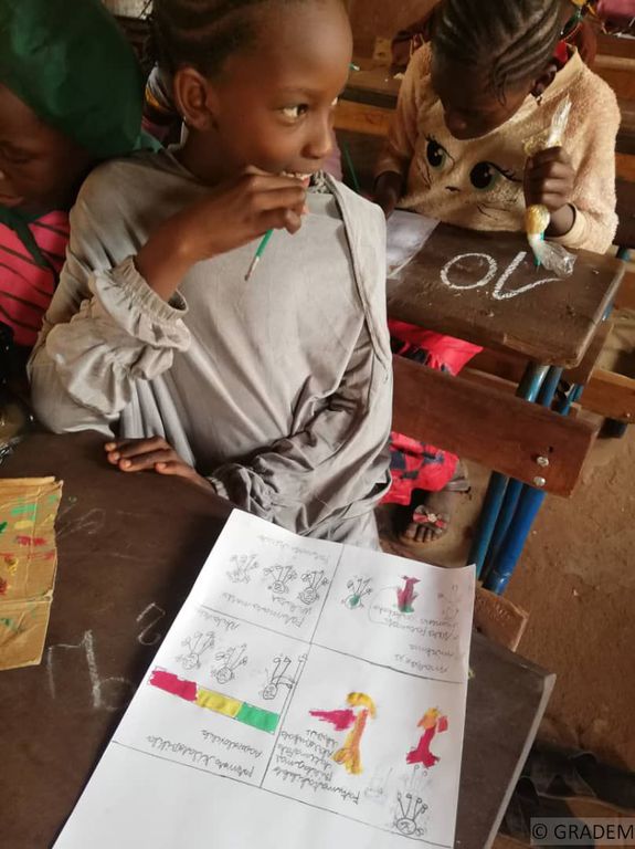 Après une pause de deux ans due à la situation sécuritaire tendue, Katja Zug a enfin pu se rendre à nouveau au Mali en janvier 2025 pour soutenir notre partenaire GRADEM dans la mise en œuvre des projets sur place. L'accent a été mis sur l'achèvement d'une bande dessinée réalisée par des enfants pour des enfants.